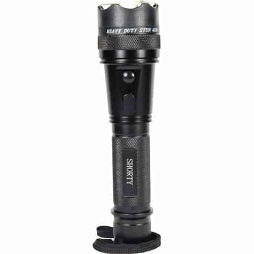 Safety Technology Shorty 75,000,000 volt Stun Gun with Flashlight. It?s small design measuring 7 1/2″ x 1 7/8″ packs a powerful punch with 4.7 milliamps of power. The bright 120 lumen flashlight will light up any scene. It’s made with high quality aircraft grade aluminum and can be used as a baton as well. The Shorty comes with a holster, wrist strap lanyard and has an on/off safety switch. Lifetime warranty.